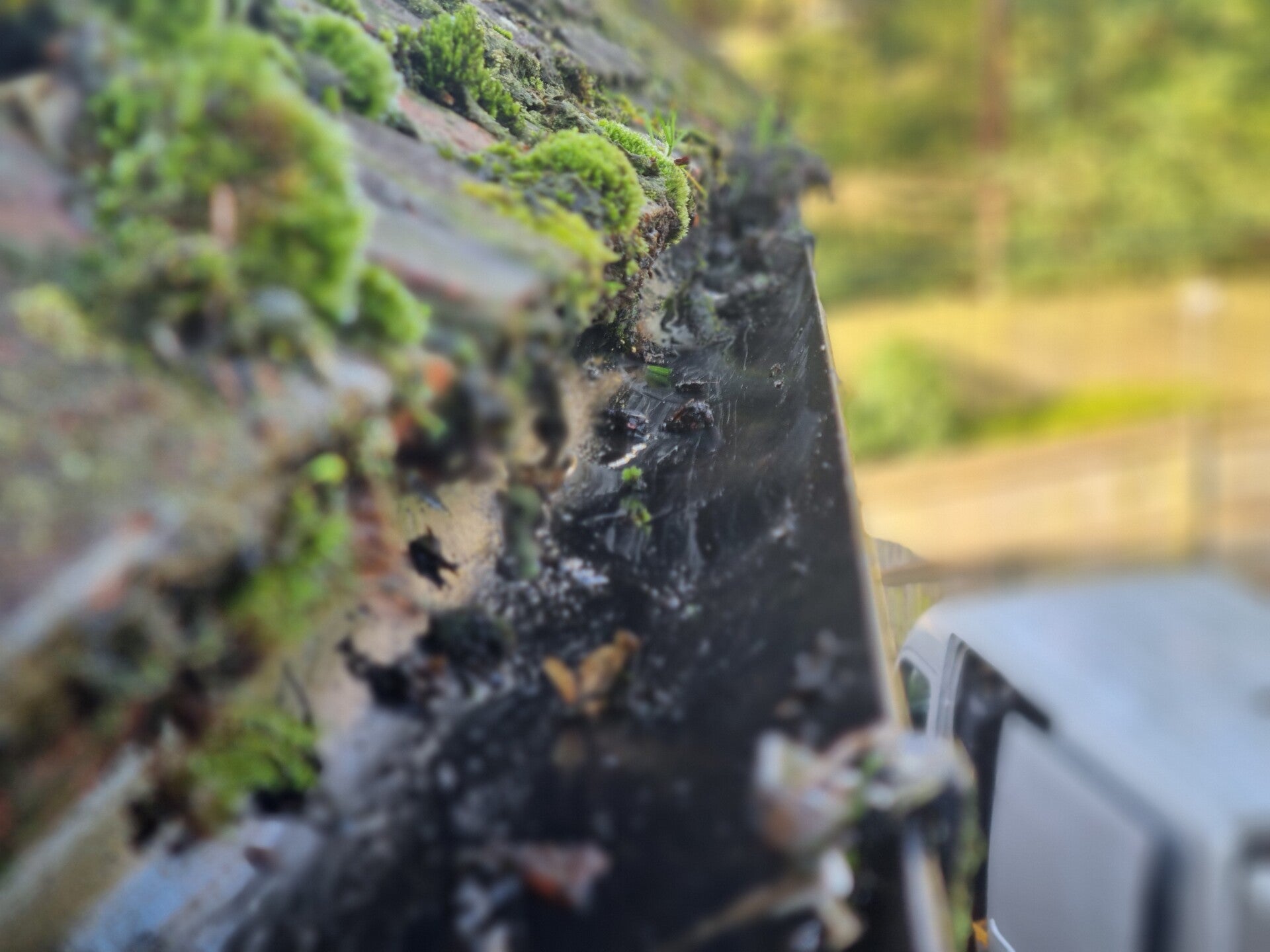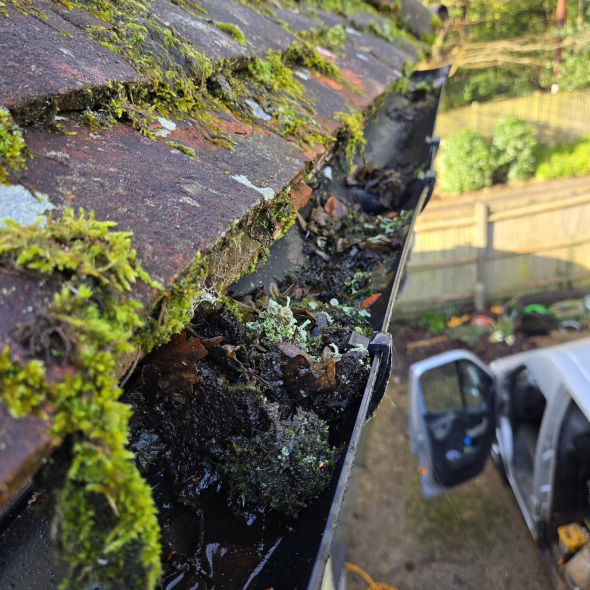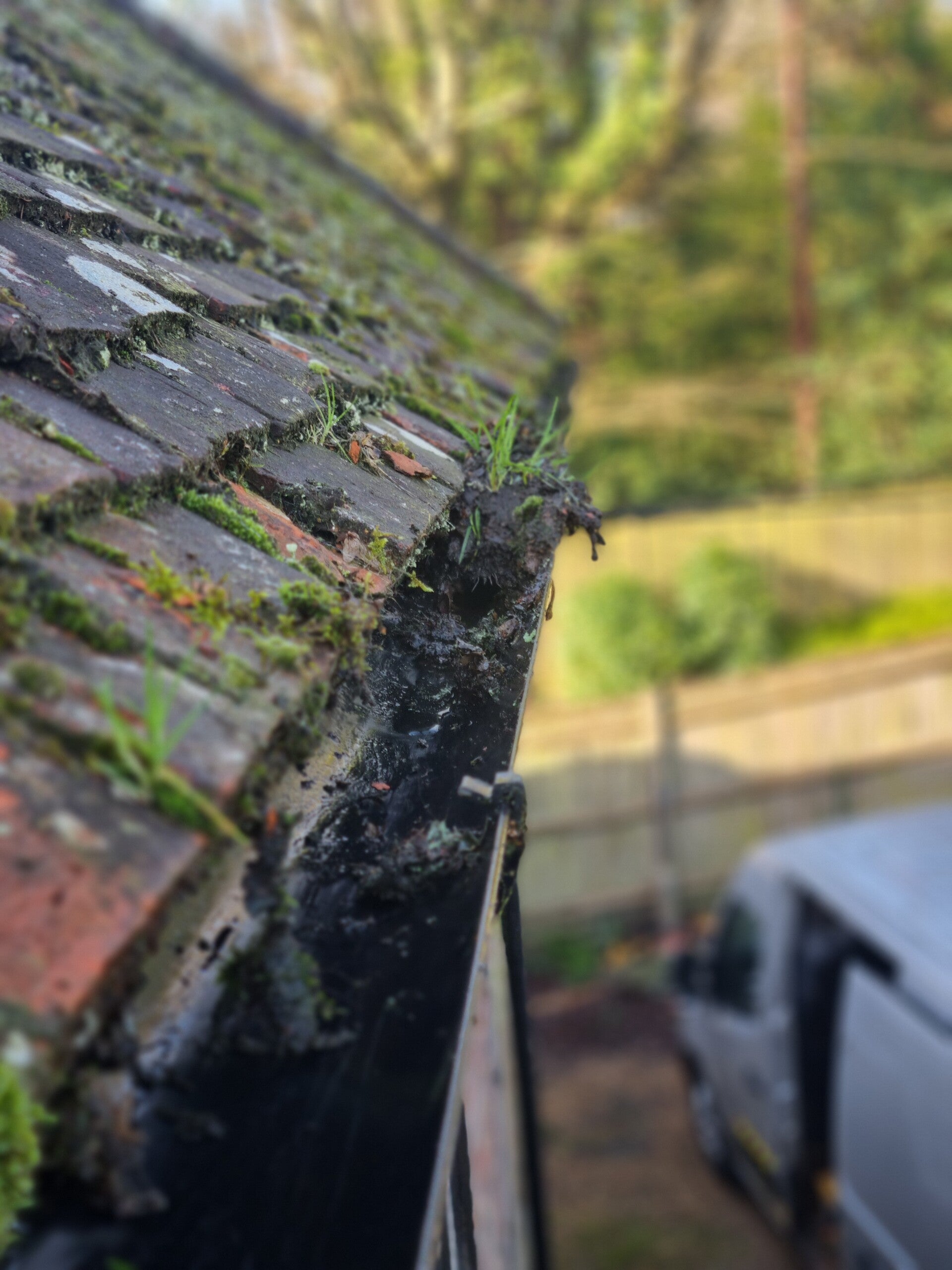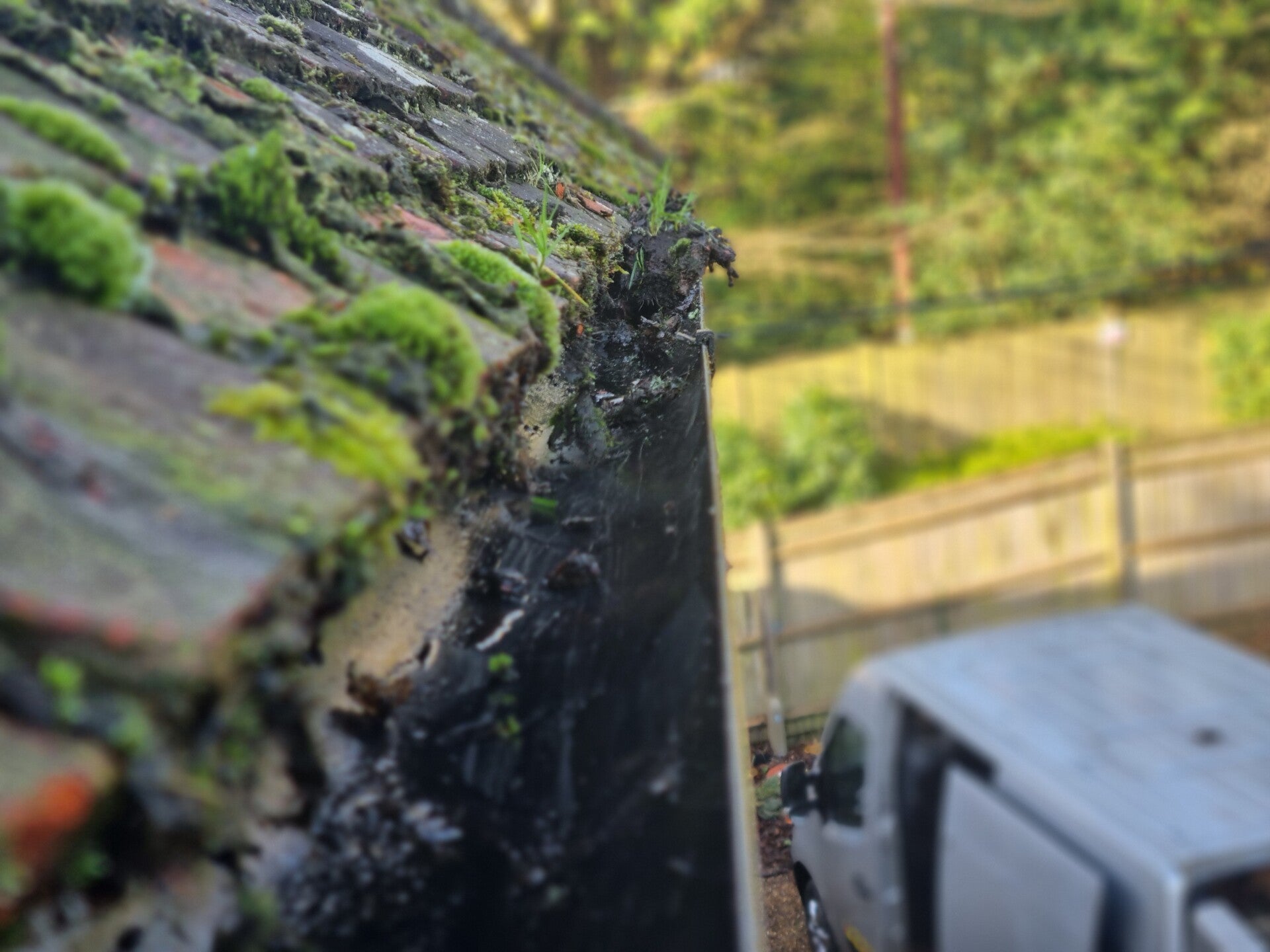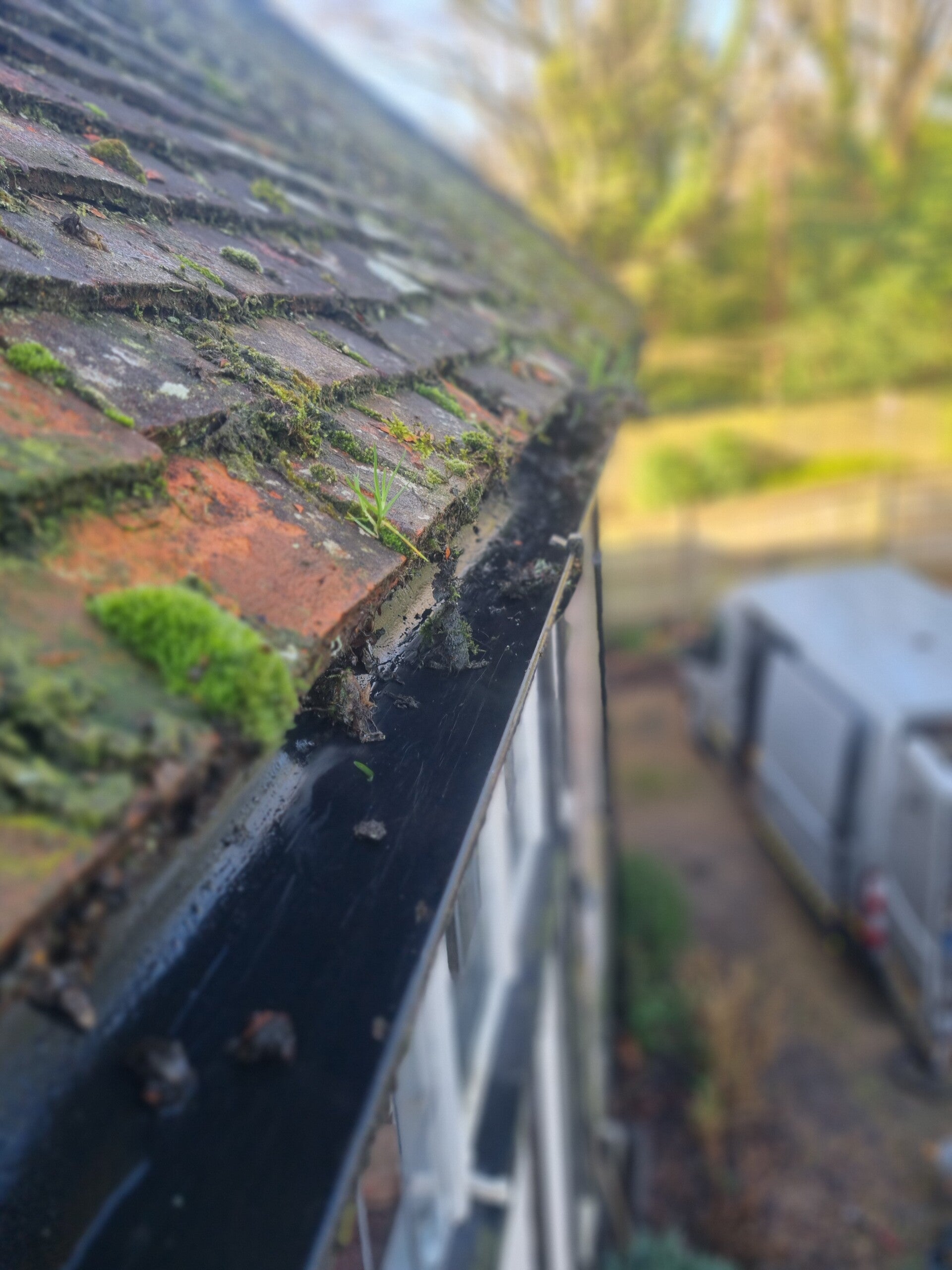 REMOVED HEAVY MOSS, LEAVES & DEBRIS FROM GUTTERS